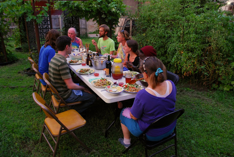 Tom ve Carol projeye yaklasik 10 yil once St.Louis’in oldukca koklu ve merkezi mahallerinden birinde eski bir ev ve civarindaki yikik dokuk bir iki fabrikaya alarak baslamislar. Once bu uc katli muhtesem evi restore etmisler. Restorayonda mumkun oldugunca geri donusum uygalamaya calismislar: Sagdan soldan toparladiklari kullanilmayan artik fazla insaat ve yapi malzemelerini tekrar kullanima kazandirmislar. Ic dekorasyonda cogunlukla ikinci el canak comlek koltuk ivir zivir almislar. Simdi bu uc katli evde ben, Tom ve Carol dahil 9 kisi birlikte yasiyoruz. Cogunlugu benim gibi doktora ogrencileri olusturdigi bu grupta herkes belli bir ekolojik vizyonu ve yasam bicimini paylasiyor. Mutfak icin herkes aylik bir ucret veriyor ve boylelikle mutfakta ki herseyi herkes yiyip iciyor. Eve hafta da bir alisveris yapiliyor, boylelikle herkesin tek tek markete arabasini surup benzin harcamasinin onune geciliyor. Bu toplu alisverislerde de supermarket zincirlerinden uzak durup, yerel ciftcilerin pazarlarindan, anarsist firinlardan, lokal kucuk olcekli marketlerden yapiliyor. Arada sizin almak istediginiz bir seyler olursa onlari alip gelecek ay vereceginiz paradan dusebiliyorsunuz. Kendinize ozel aldiklariniza renkli etiketler yapistirip baska insanlarin kullanimina kapatabiliyorsunuz. Bu sekilde sosyal birliktelik, paylasim ve bireysel farkliliklar belli bir dengede tutulmus oluyor.